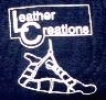 The Leather Creations logo, and the "suspended hog tie" in outline format (both registered trademarks) on a 50/50 cotton/poly heavyweight T-shirt.